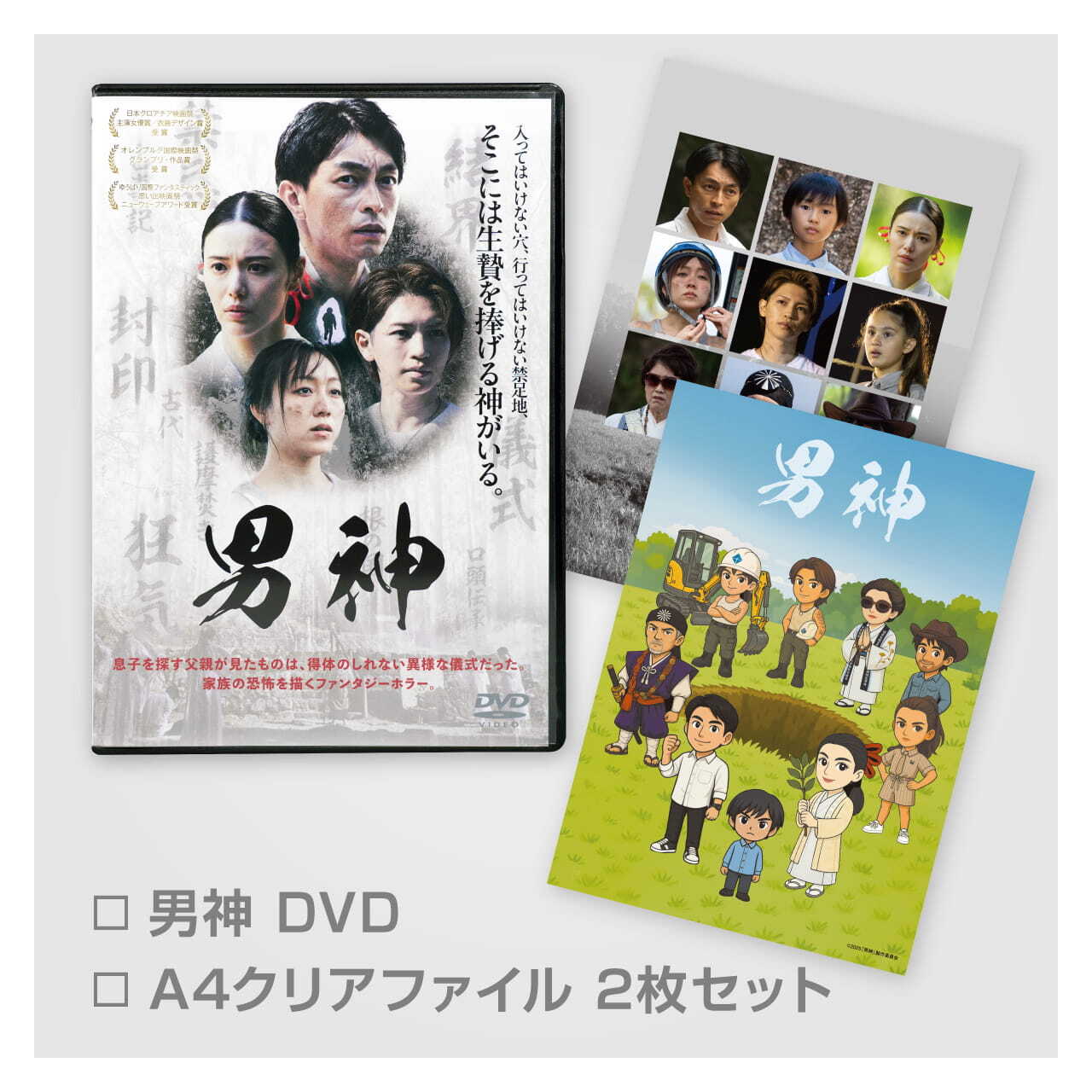 □DVD ¥4,400(税込) □A4クリアファイル2枚セット〈20%OFF〉 ¥1,100 → ¥880円(税込) 総額:¥5,280(税込) 品番:CEOD-0001 制作年度:2025年 収録時間:93分 特典映像:105秒 映像:カラー 音声:ドルビーデジタル5.1chサラウンド(本編のみ) 言語:日本語 字幕:英語(本編のみ) ディスク枚数:1枚 備考:※商品の仕様については変更になる場合があります。 <特典映像> ・予告15秒 ・予告30秒 ・予告60秒 <セット品> ・A4クリアファイル2枚セット 内容:2 枚入り サイズ:A4 対象年齢:6歳以上 発売元:2025『男神』 制作委員会 販売元:株式会社 セレモニー